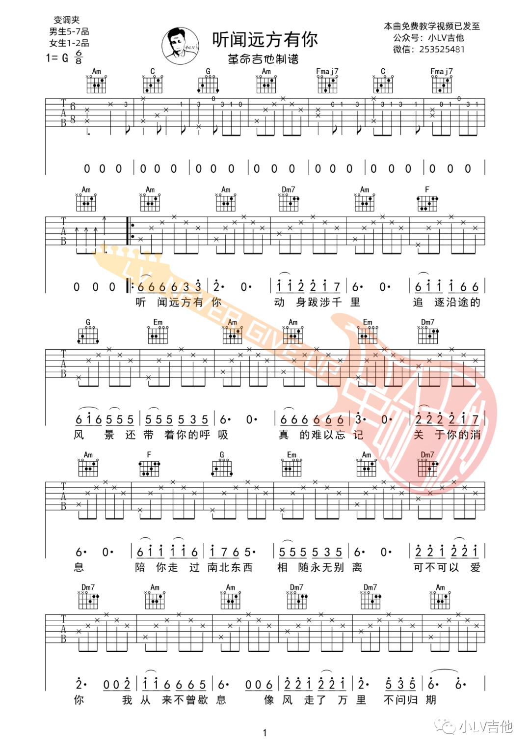革命吉他《听闻远方有你》吉他谱,革命吉他编配出品,共有3张高清图谱。...