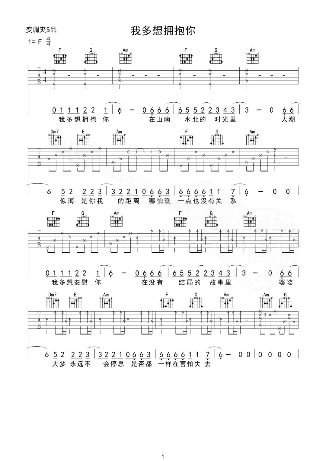 黑屋乐队《我多想拥抱你》吉他谱,革命吉他编配出品,共有3张高清图谱。...