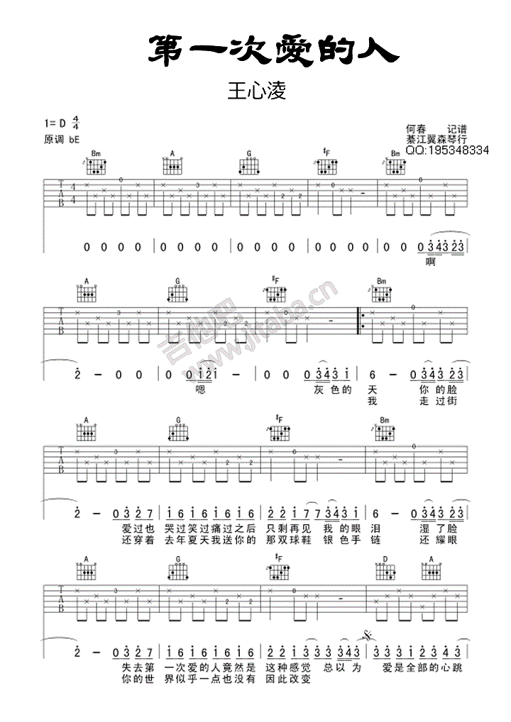 吉他王心凌《第一次爱的人》吉他谱_吉他弹唱谱_何春编配