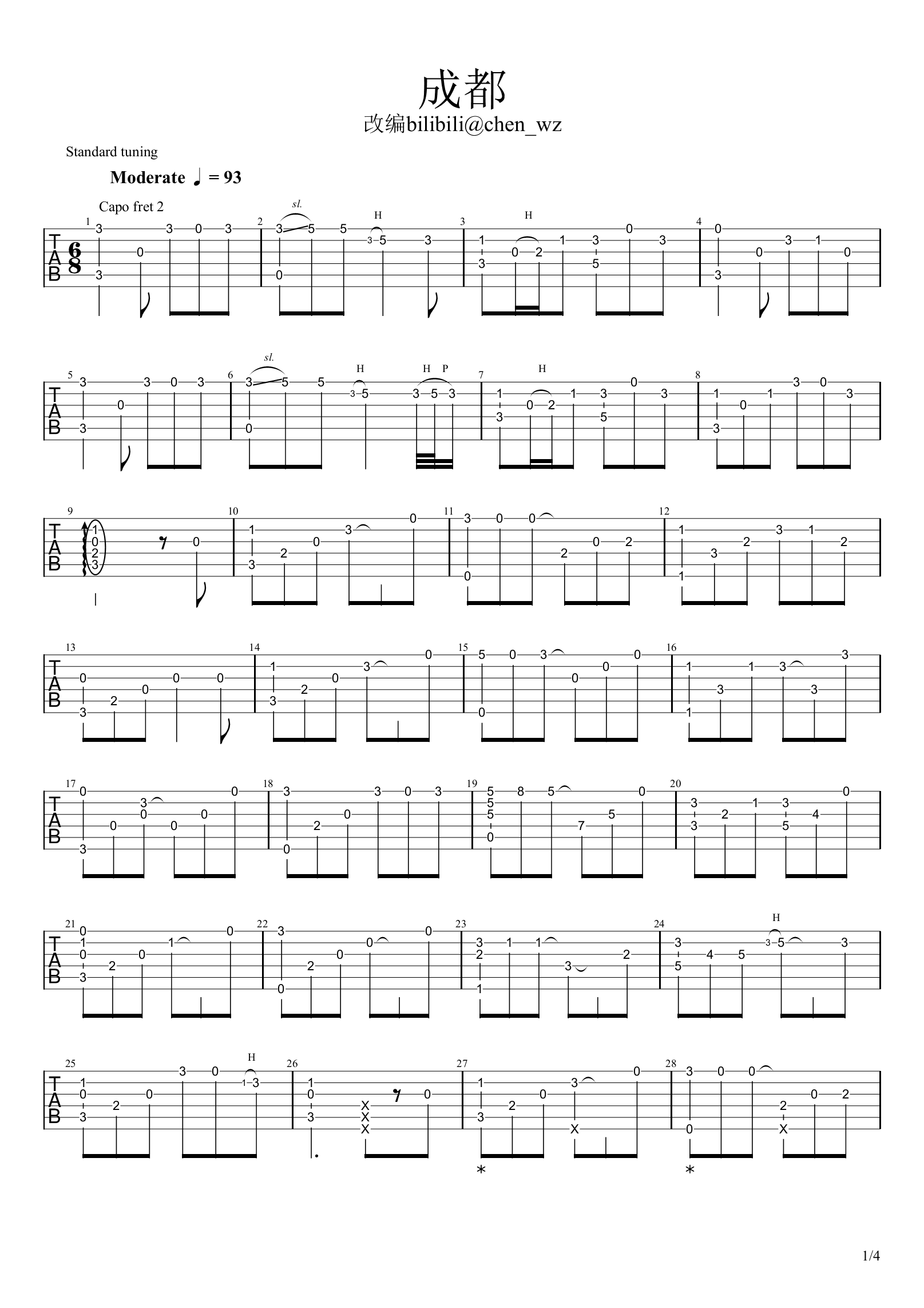 赵蕾《成都》吉他谱,chen_wz编配出品,共有4张高清图谱。...