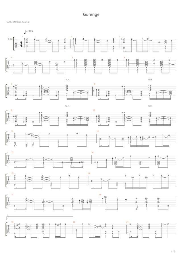 郑成河《Gurenge》吉他谱,共有5张高清图谱。...