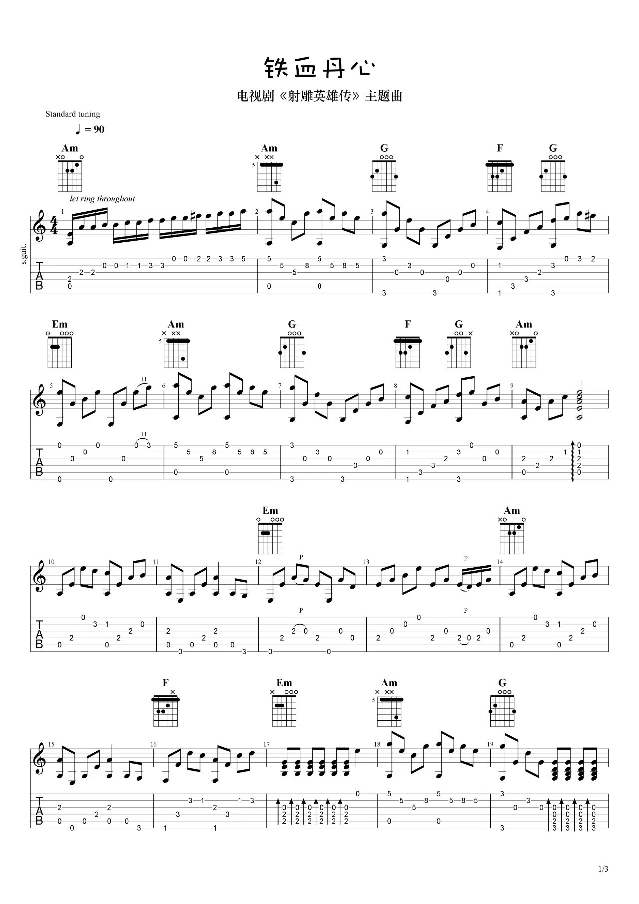 射雕英雄传《铁血丹心》吉他谱,共有3张高清图谱。...