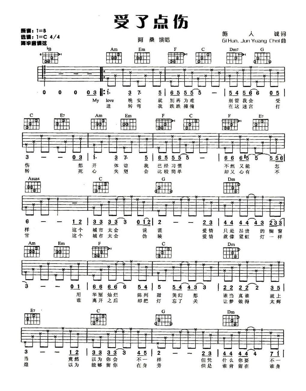 吉他阿桑《受了点伤》吉他谱_吉他弹唱谱