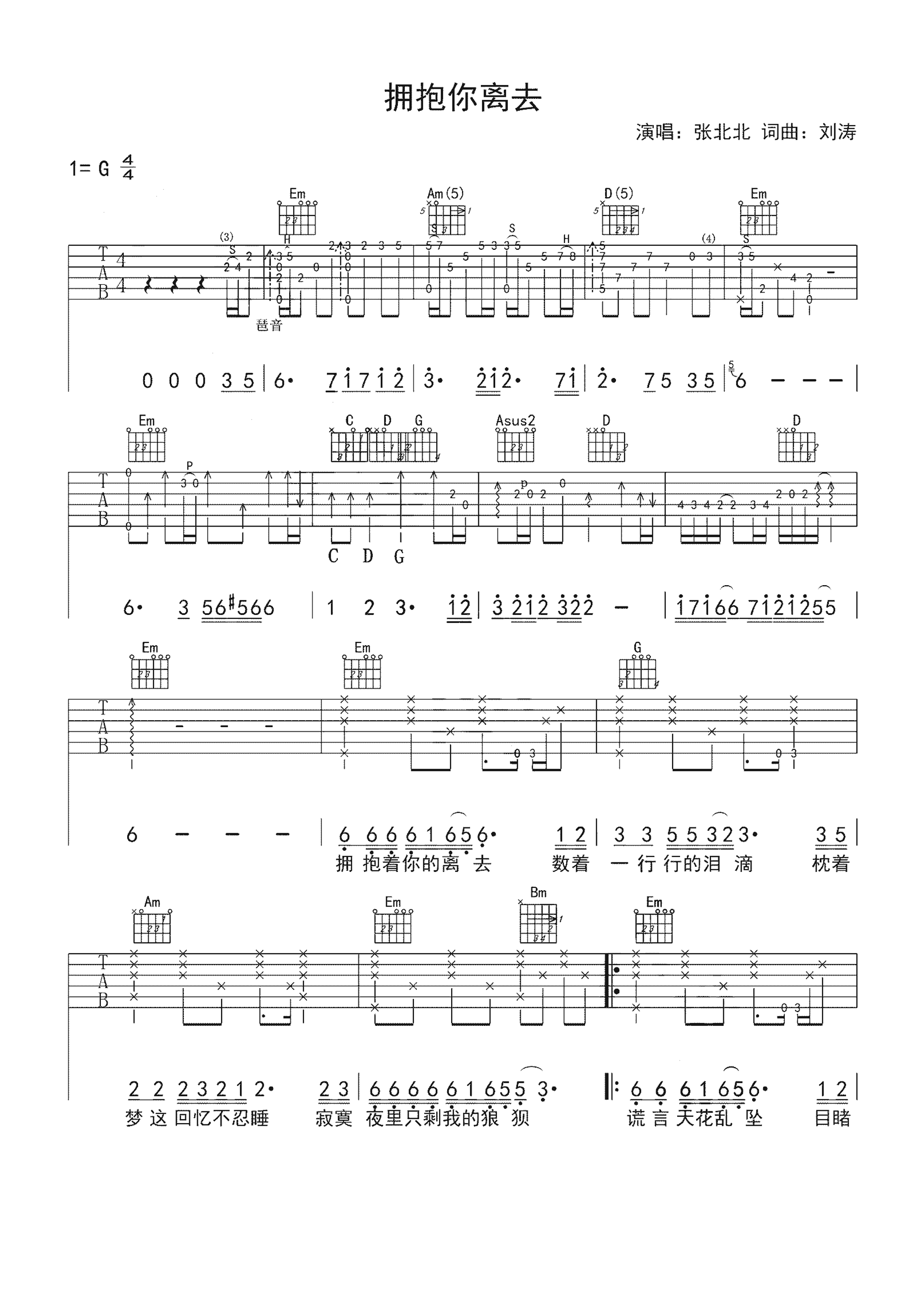 吉他张北北《拥抱你离去》吉他谱_吉他弹唱谱