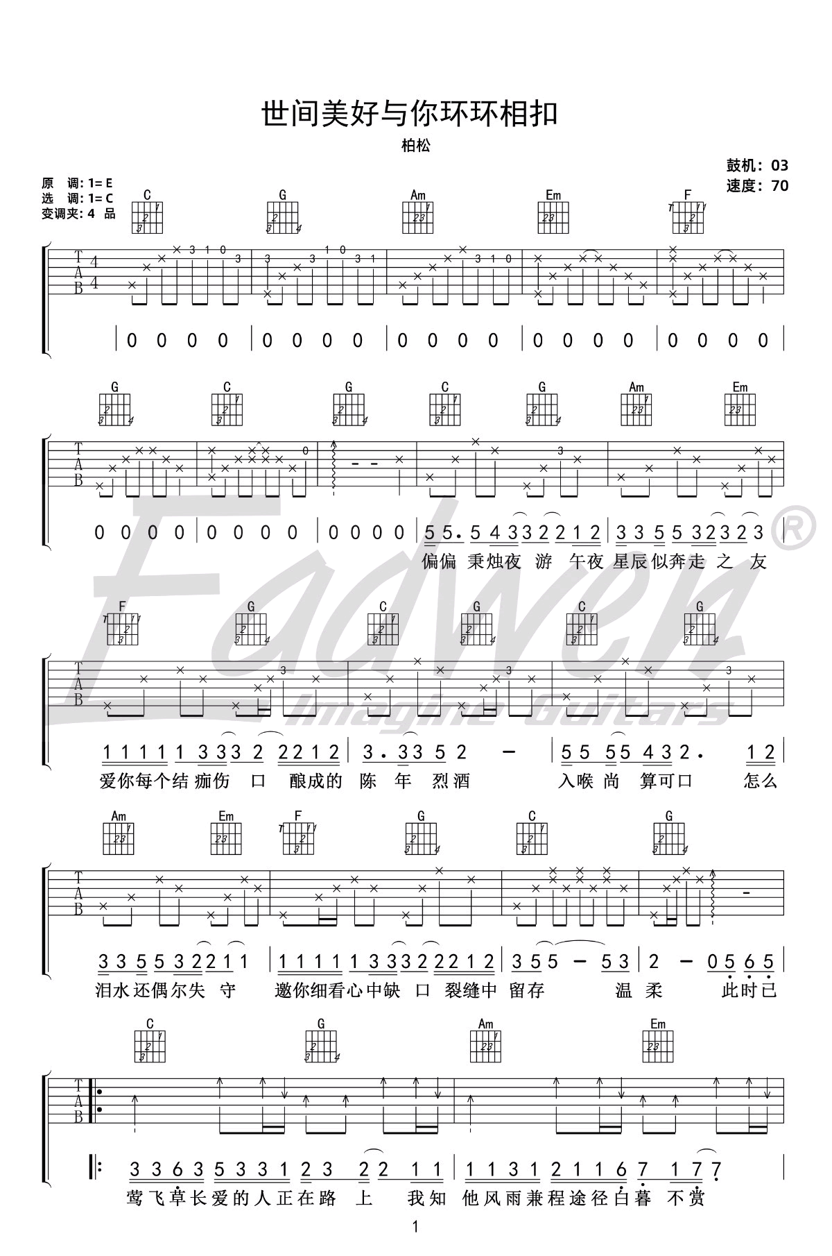 柏松《世间美好与你环环相扣》吉他谱,爱德文吉他编配出品,共有3张高清图谱。...