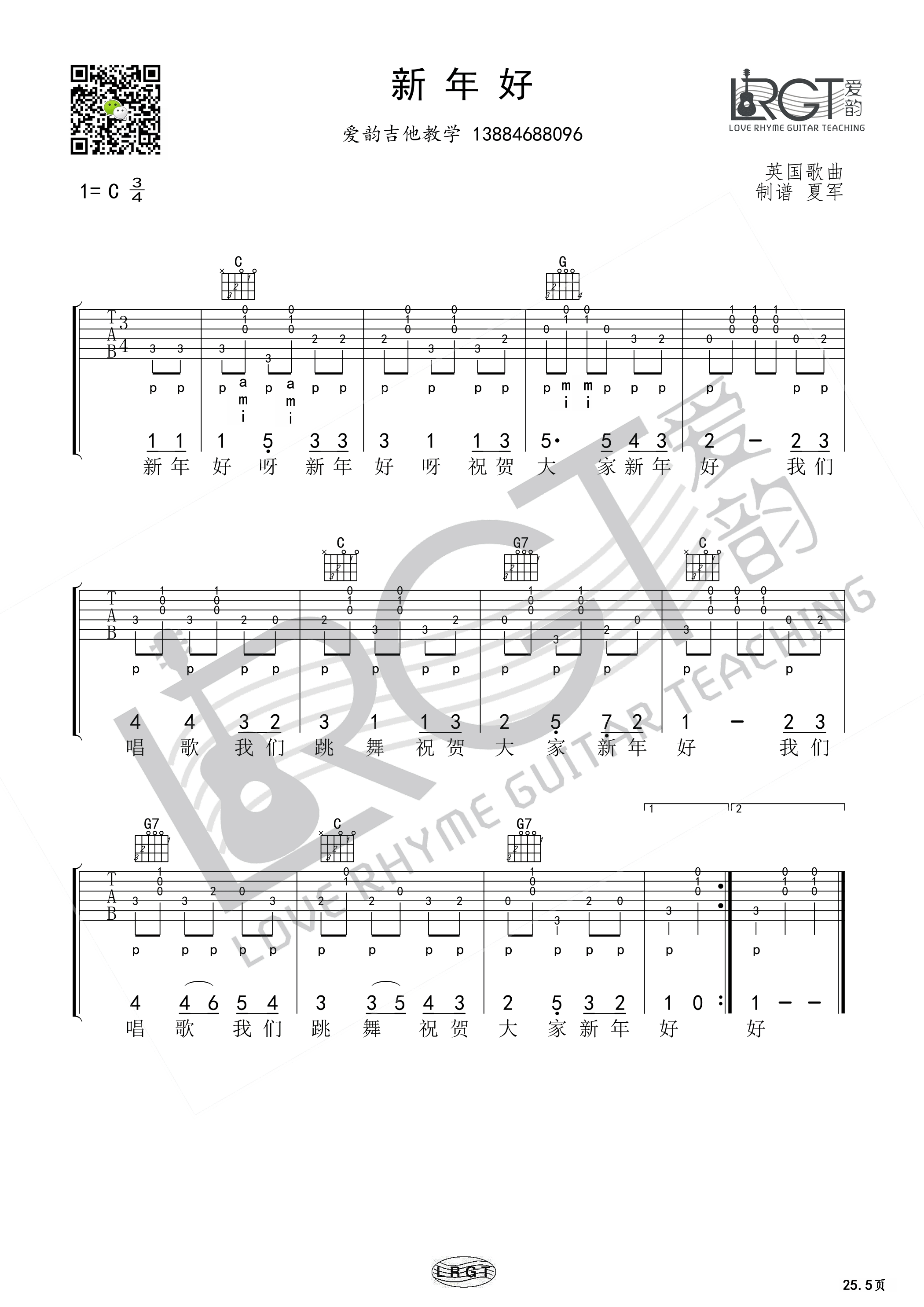 吉他爱韵吉他《新年好》吉他谱_吉他弹唱谱_爱韵夏君编配