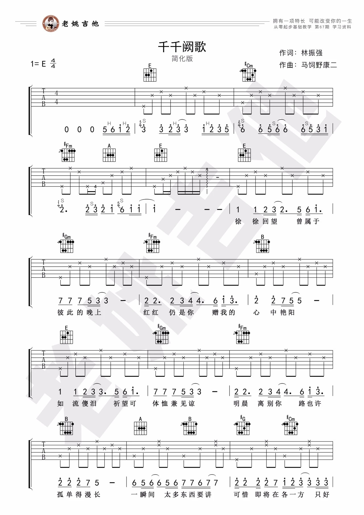 陈慧娴《千千阙歌》吉他谱,老姚吉他编配出品,共有3张高清图谱。...