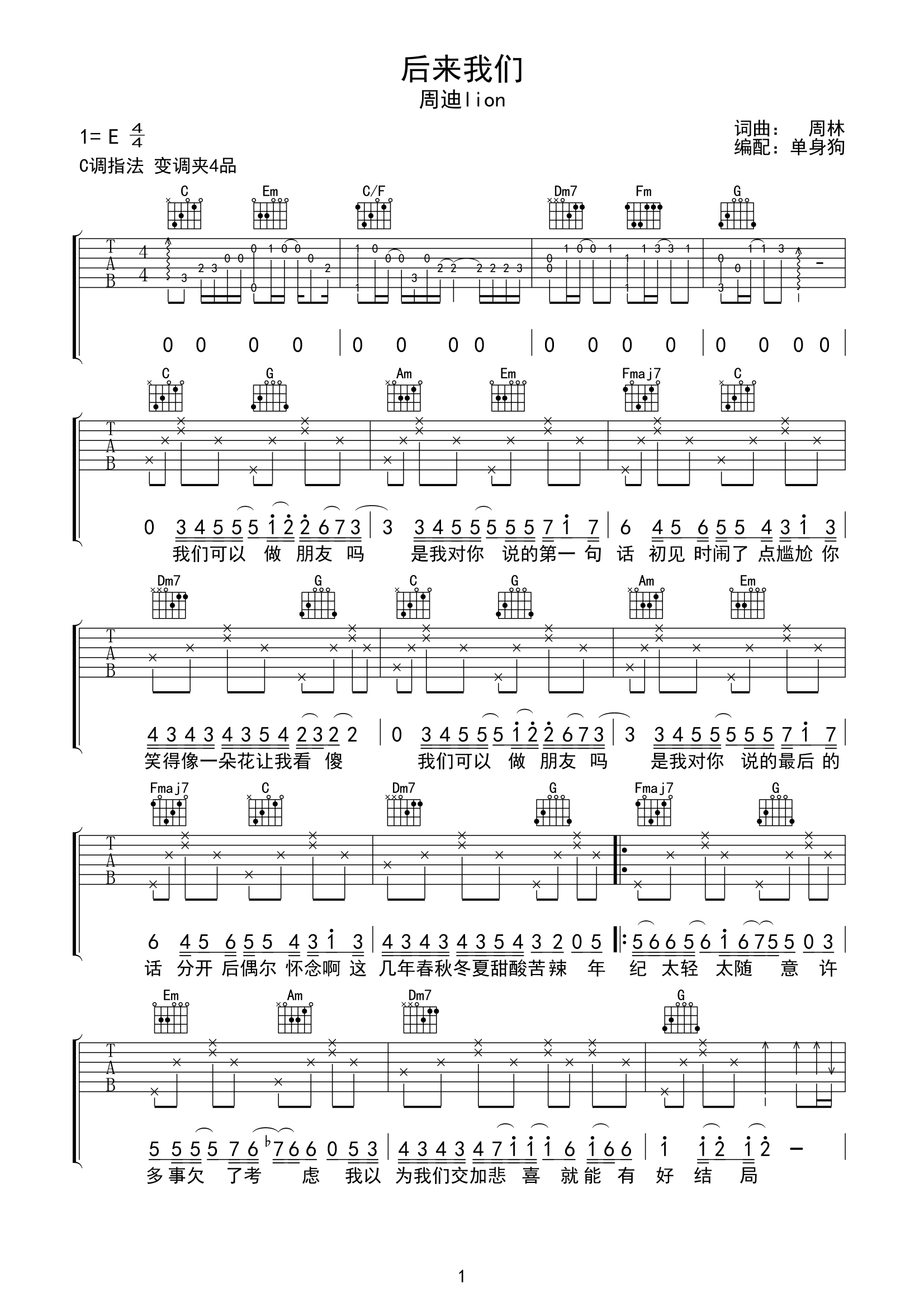 吉他周迪lion《后来我们》吉他谱_吉他弹唱谱