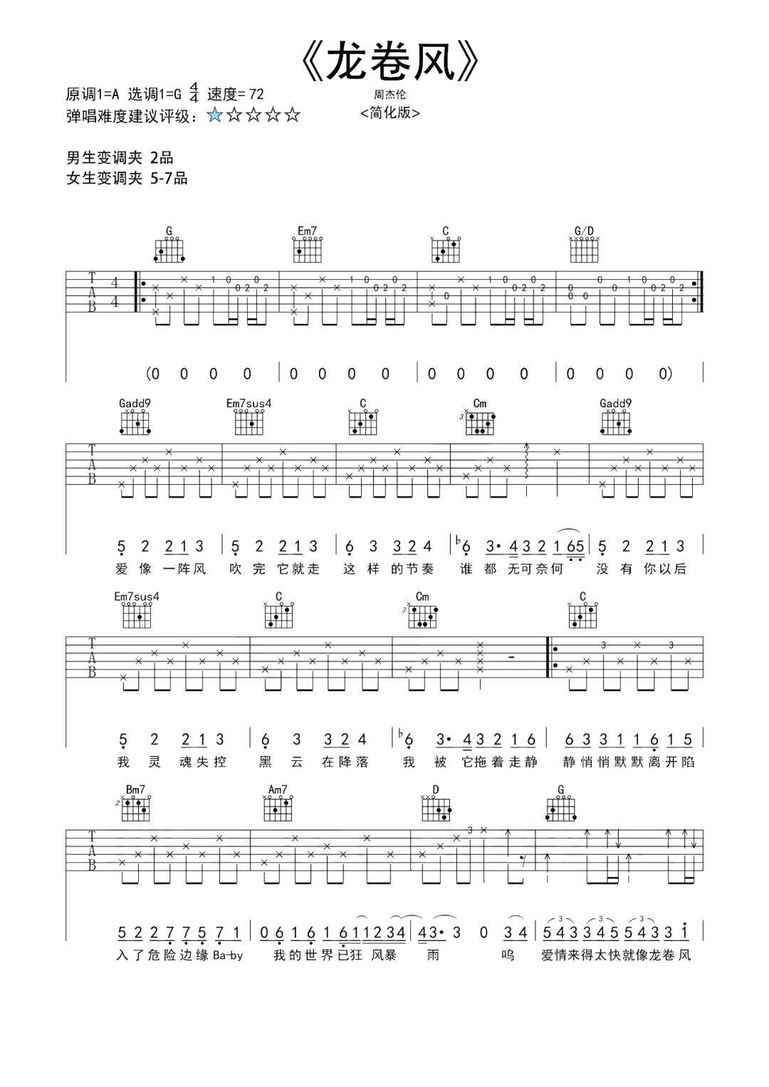吉他周杰伦《龙卷风》吉他谱_吉他弹唱谱_孙学长吉他教室编配