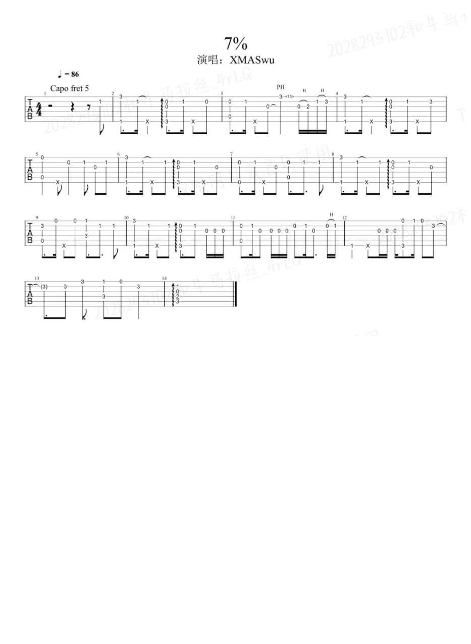 Xmas《7%》吉他谱,共有1张高清图谱,免翻页排版设计。...