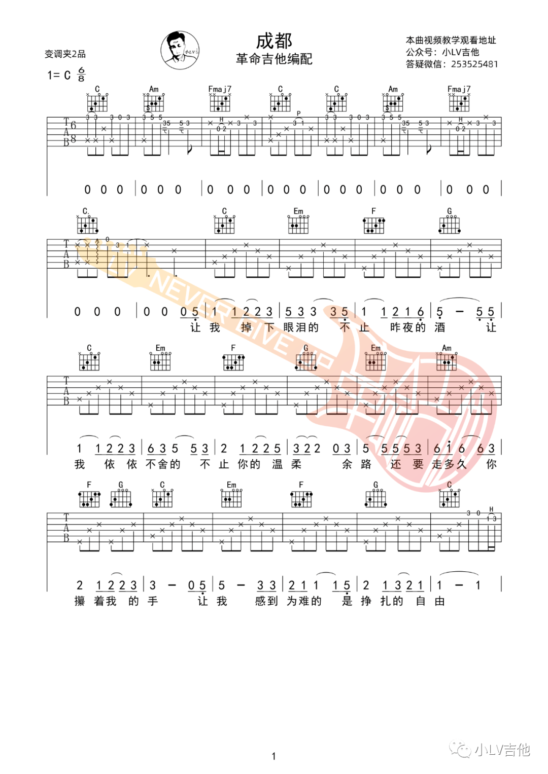 赵雷《成都》吉他谱,革命吉他编配出品,共有4张高清图谱。...
