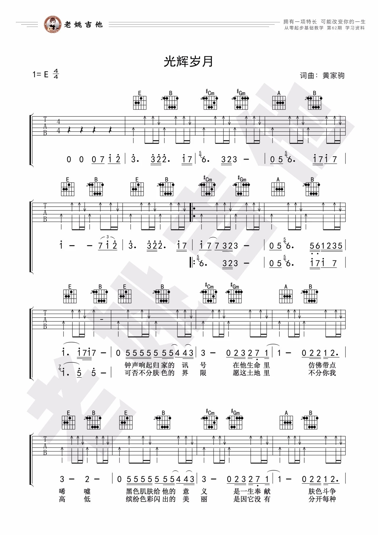 吉他BEYOND《光辉岁月》吉他谱_吉他弹唱谱_老姚吉他编配