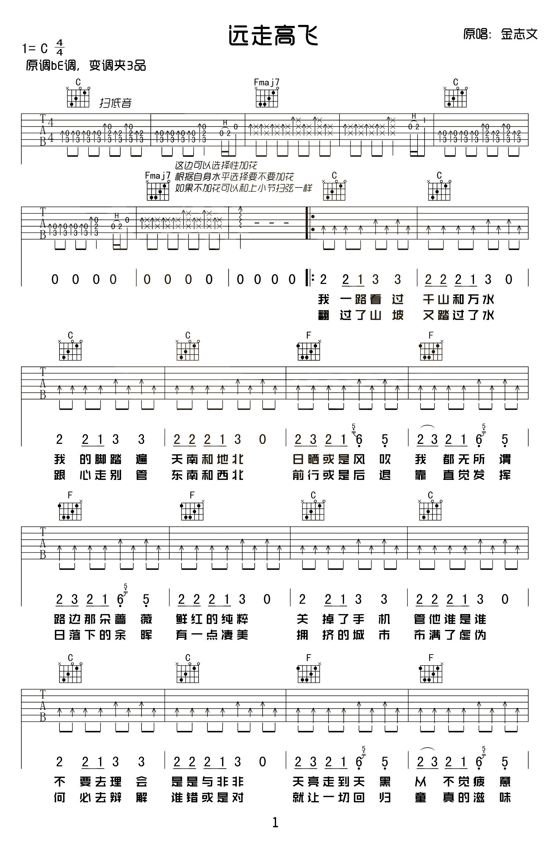 吉他金志文《远走高飞》吉他谱_吉他弹唱谱_唯音悦编配