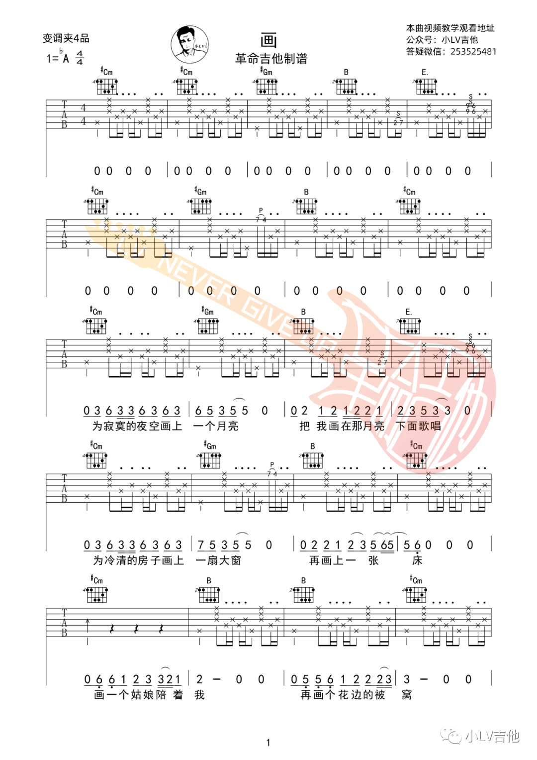赵雷《画》吉他谱,革命吉他编配出品,共有3张高清图谱。...