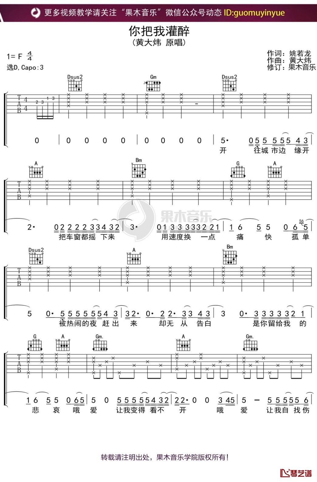 吉他黄大伟《你把我灌醉》吉他谱_吉他弹唱谱_果木音乐编配