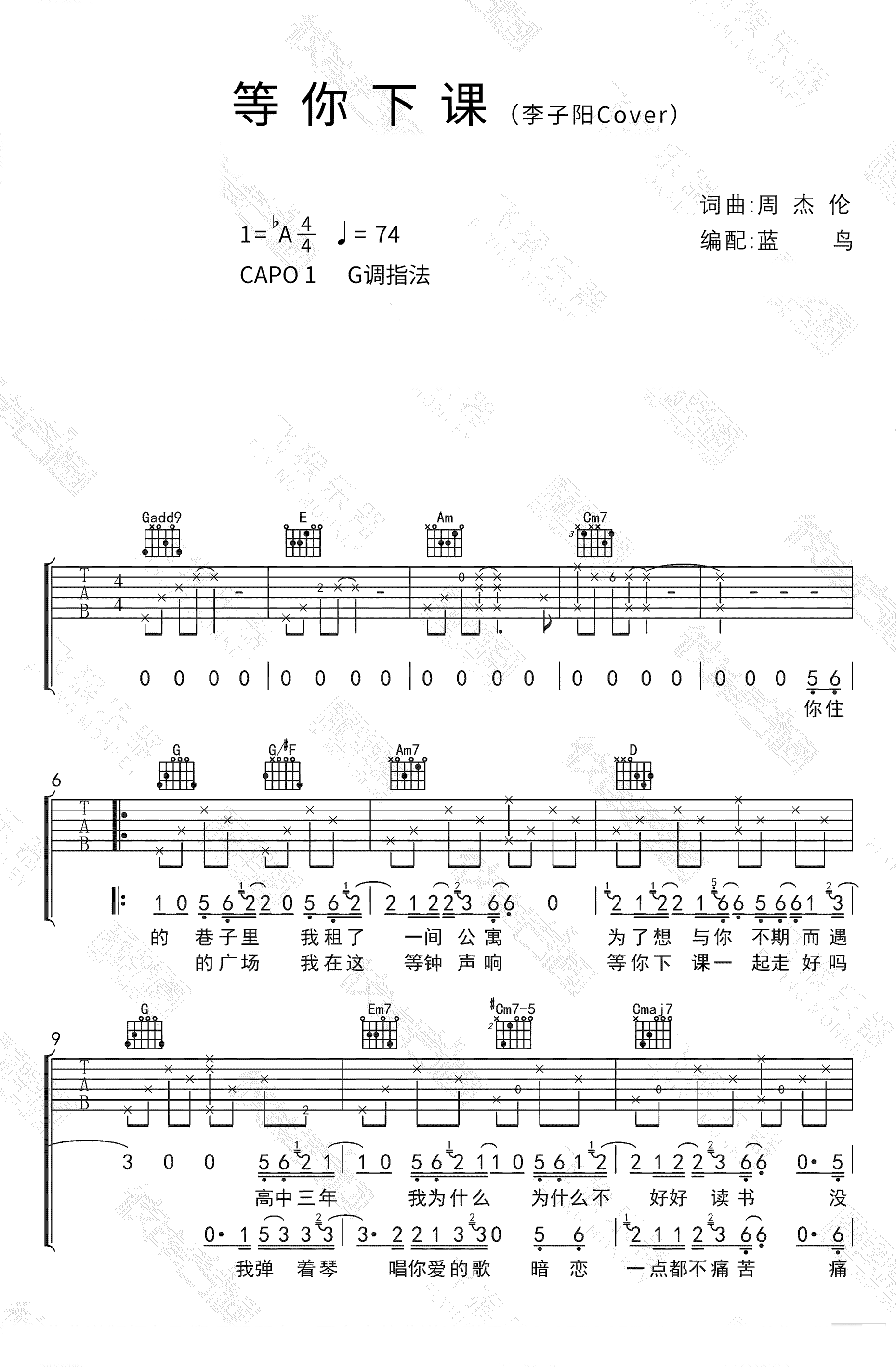 周杰伦《等你下课》吉他谱,彼岸--蓝鸟编配出品,共有3张高清图谱。...