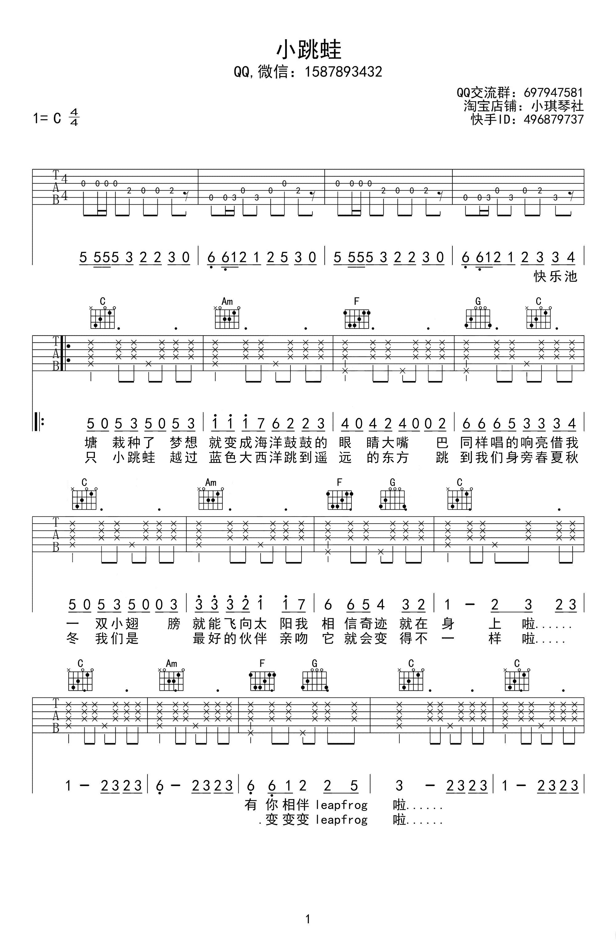 吉他青蛙乐队《小跳蛙》吉他谱_吉他弹唱谱_小琪琴社编配