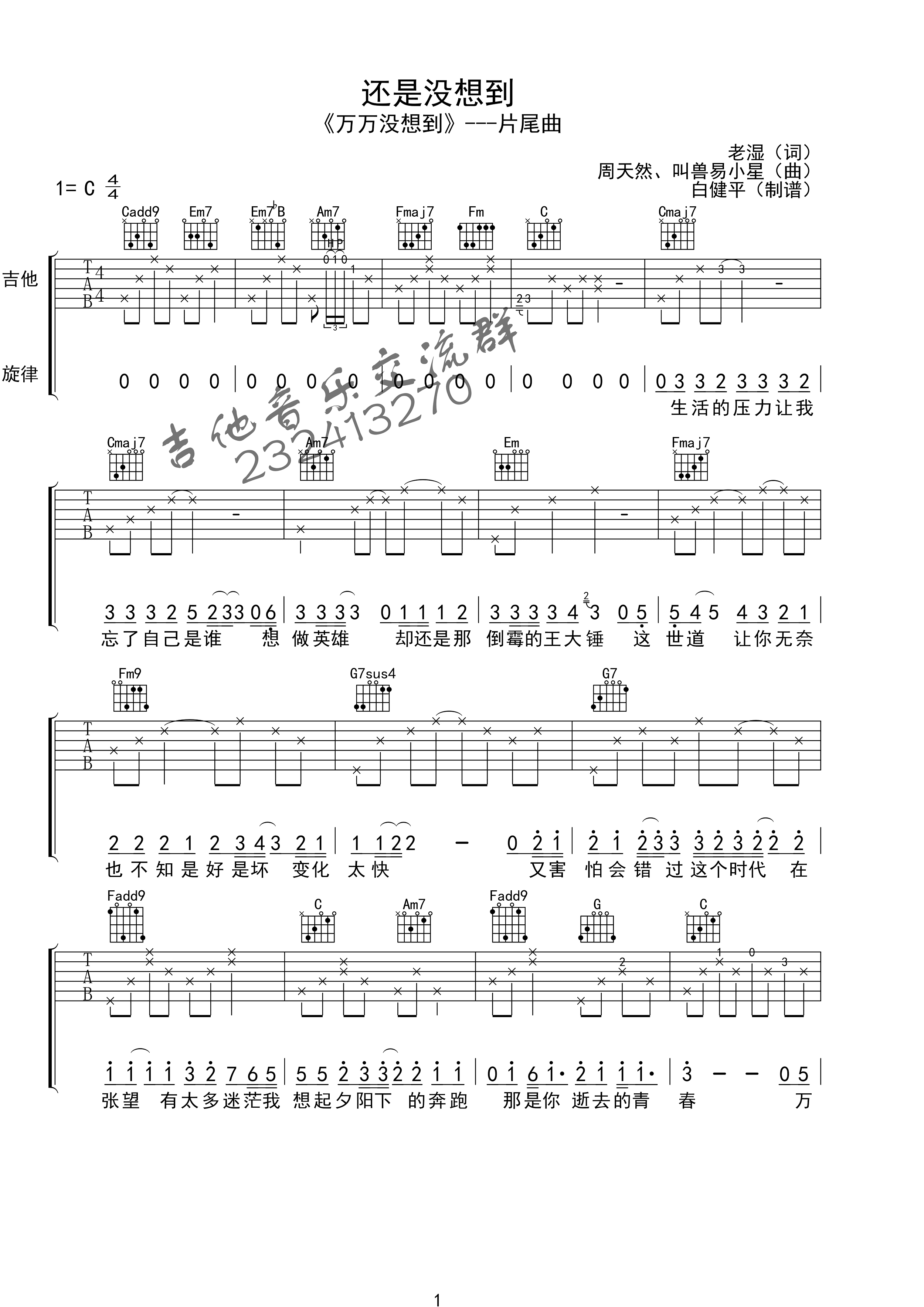 吉他万万没想到 片尾曲《还是没想到》吉他谱_吉他弹唱谱_白建平编配