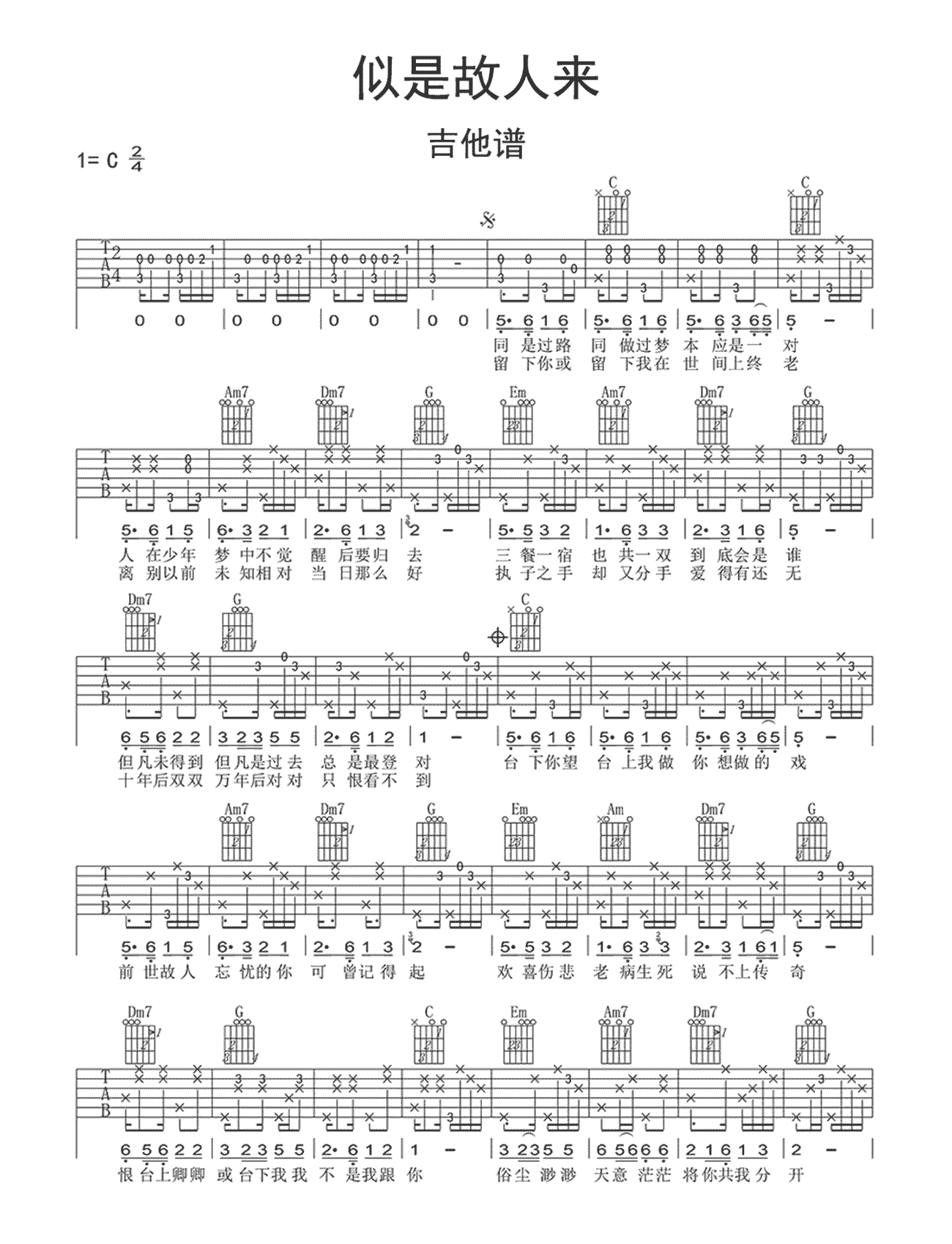 梅艳芳《似是故人来》吉他谱,共有2张高清图谱,免翻页排版设计。...