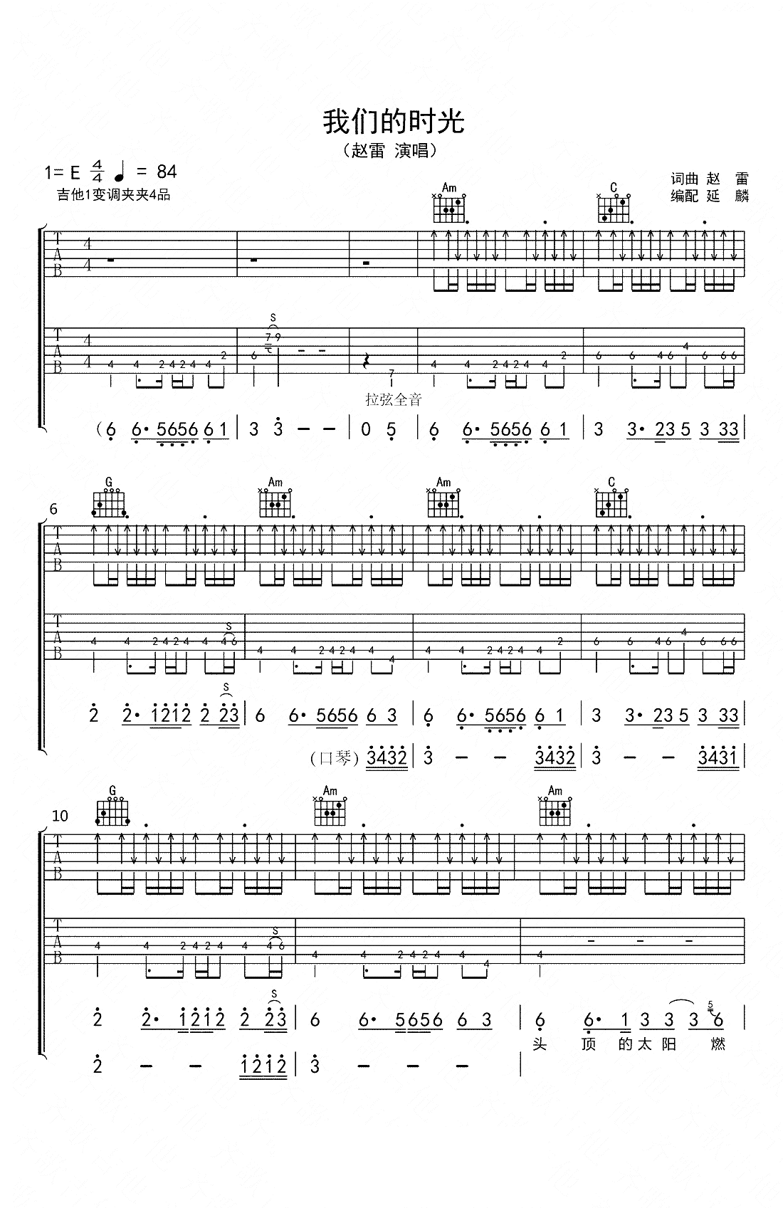 赵雷《我们的时光》吉他谱,齐歌吉他--延麟编配出品,共有5张高清图谱。...
