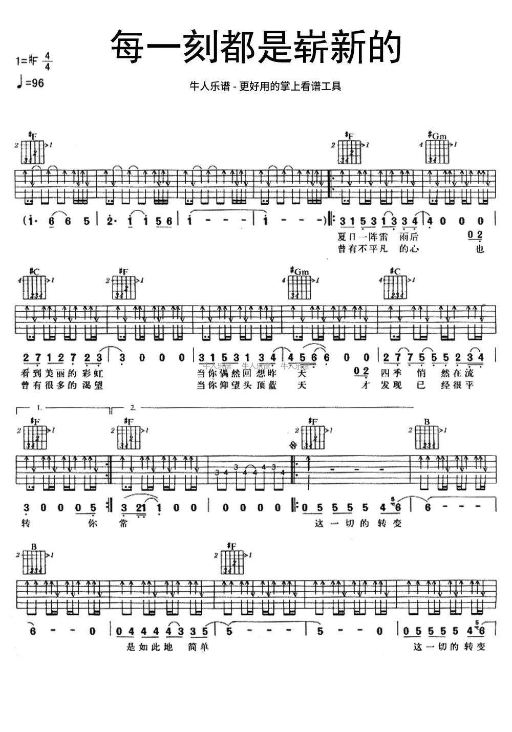 许巍《每一刻都是崭新的》吉他谱,共有2张高清图谱,免翻页排版设计。...
