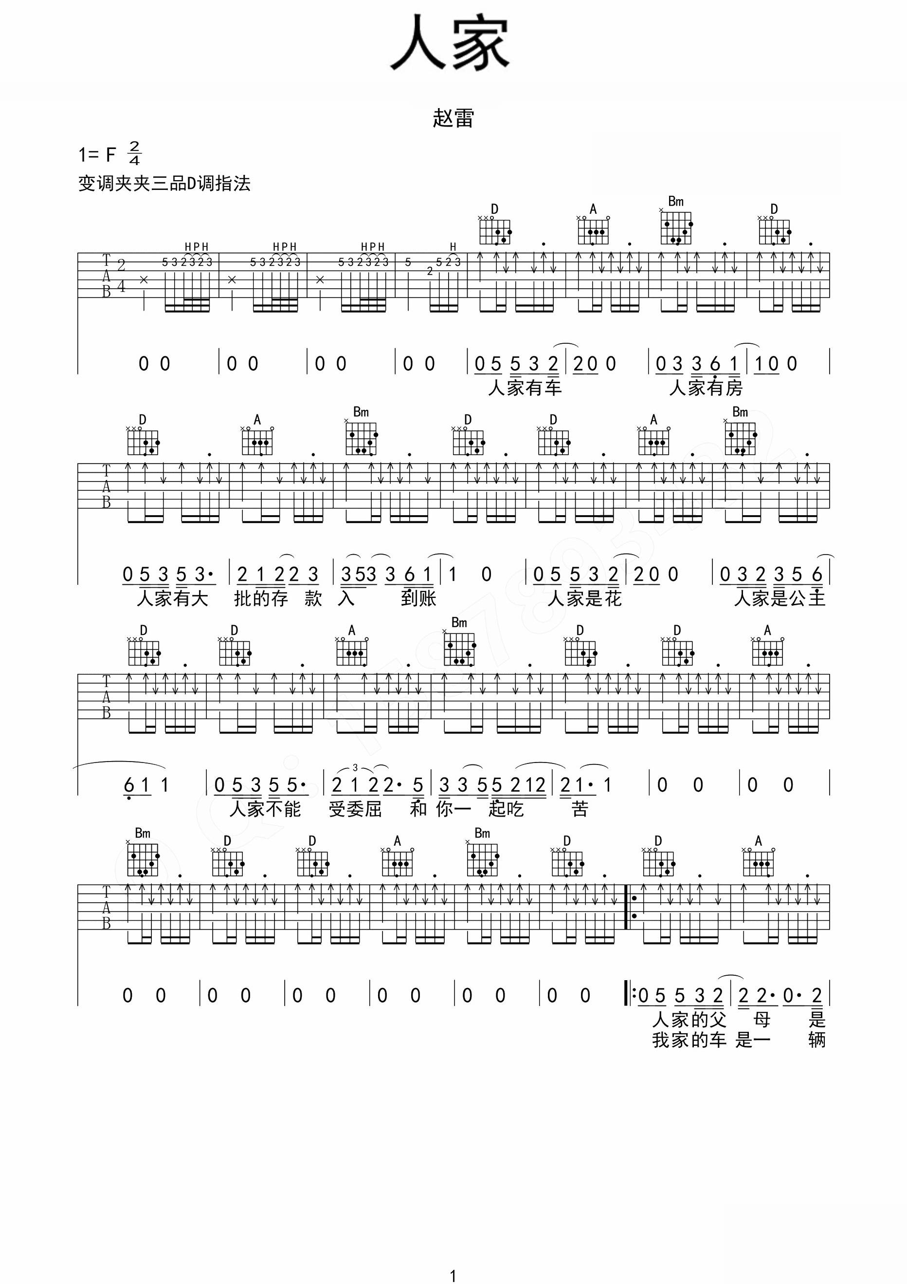 吉他赵雷《人家》吉他谱_吉他弹唱谱_巍小琪编配