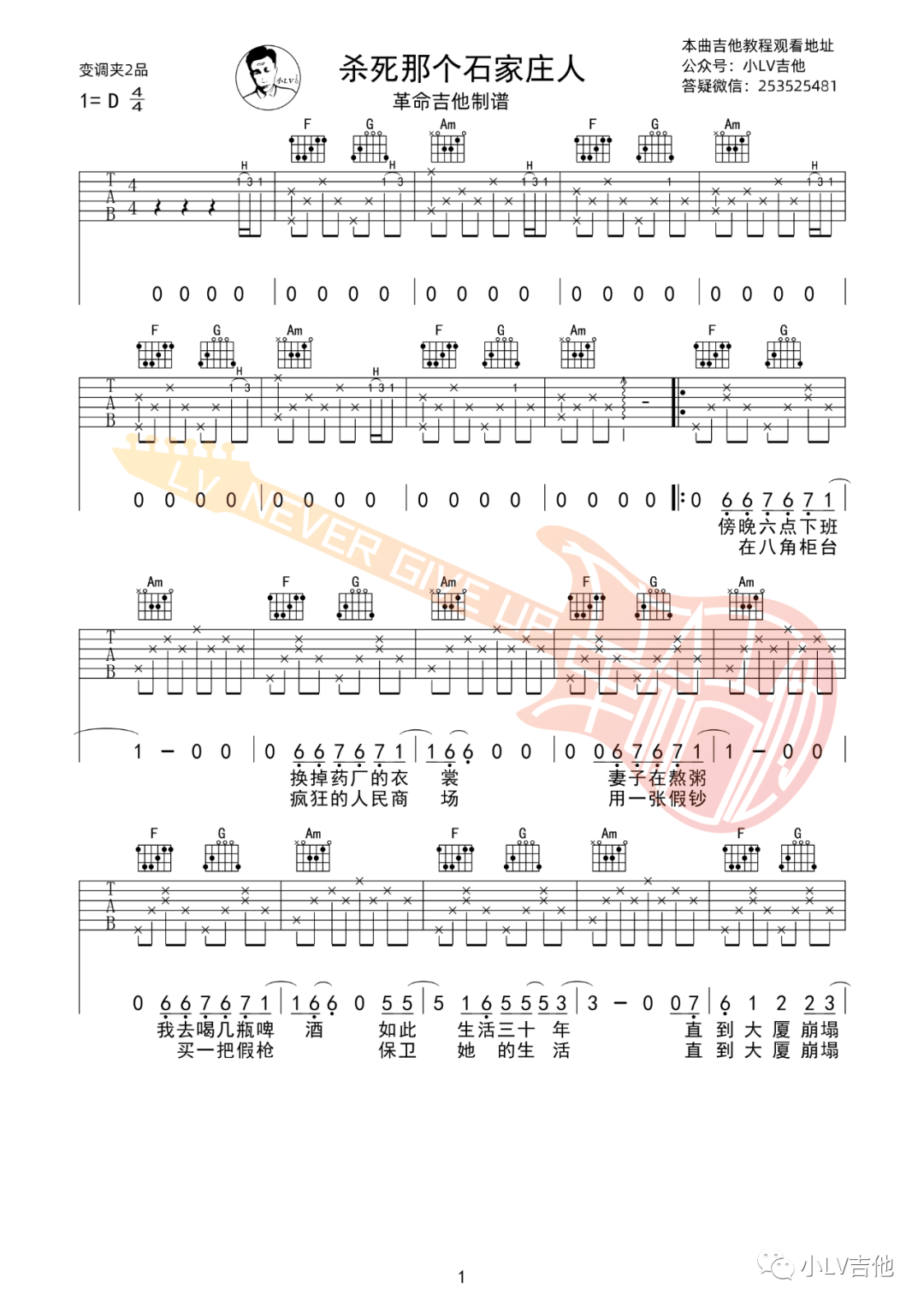 万青《杀死那个石家庄人》吉他谱,革命吉他编配出品,共有3张高清图谱。...