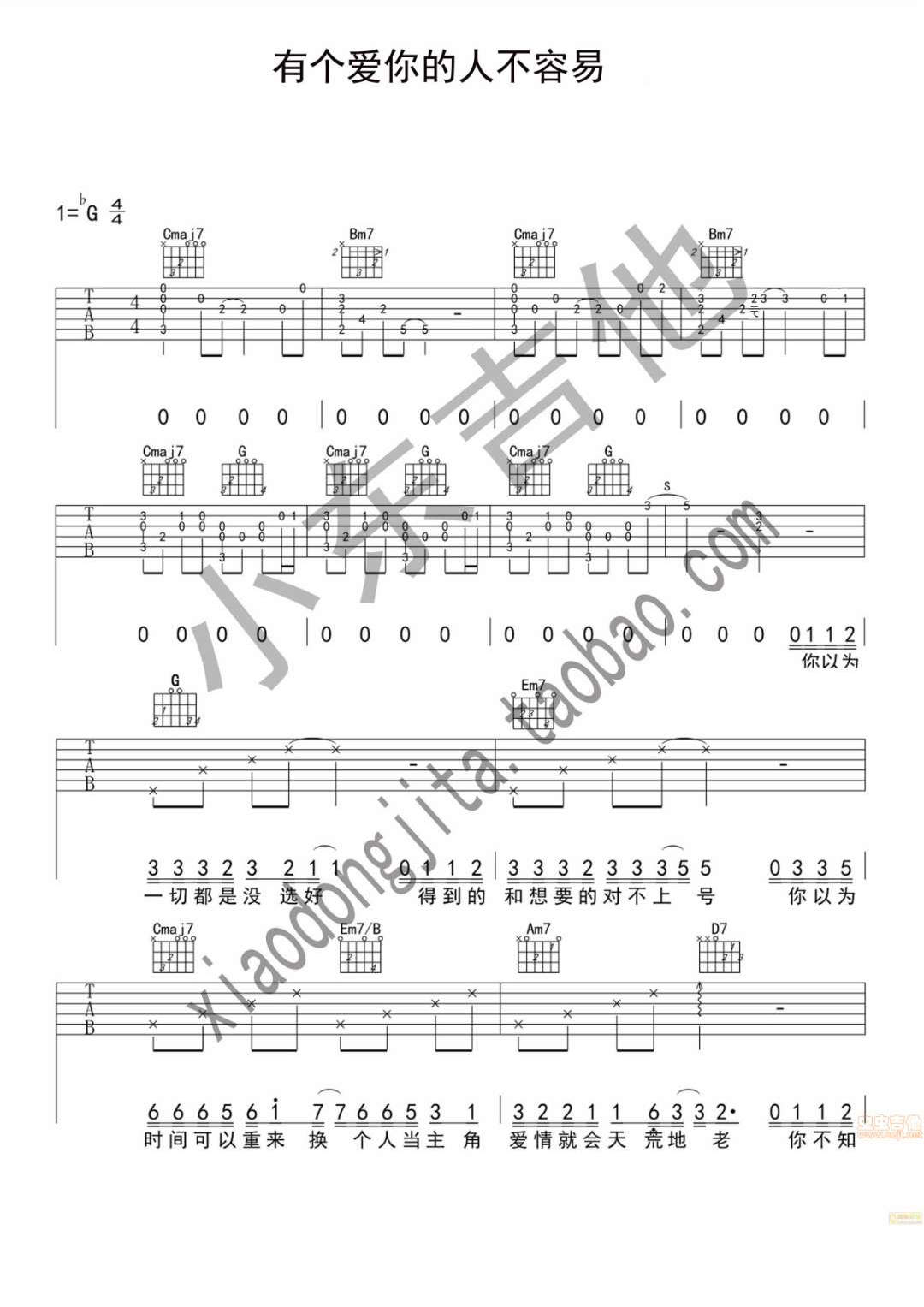 吉他那英《有个爱你的人不容易》吉他谱_吉他弹唱谱_小东吉他编配