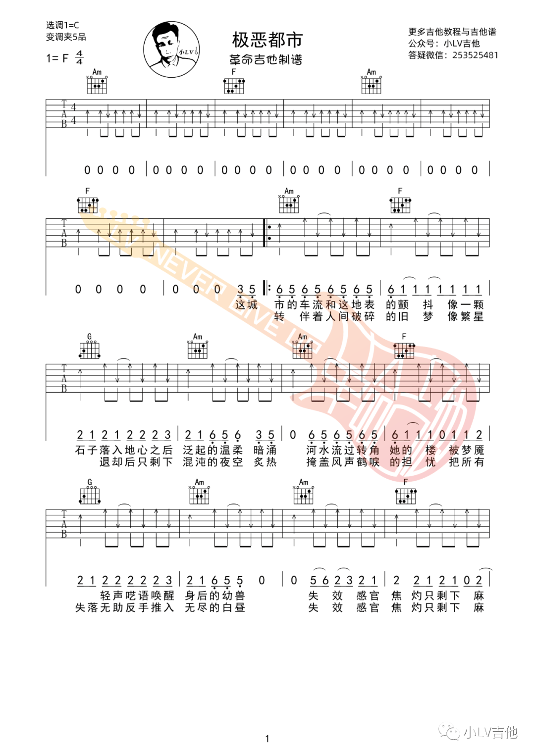 吉他夏日入侵企画《极恶都市》吉他谱_吉他弹唱谱_革命吉他编配