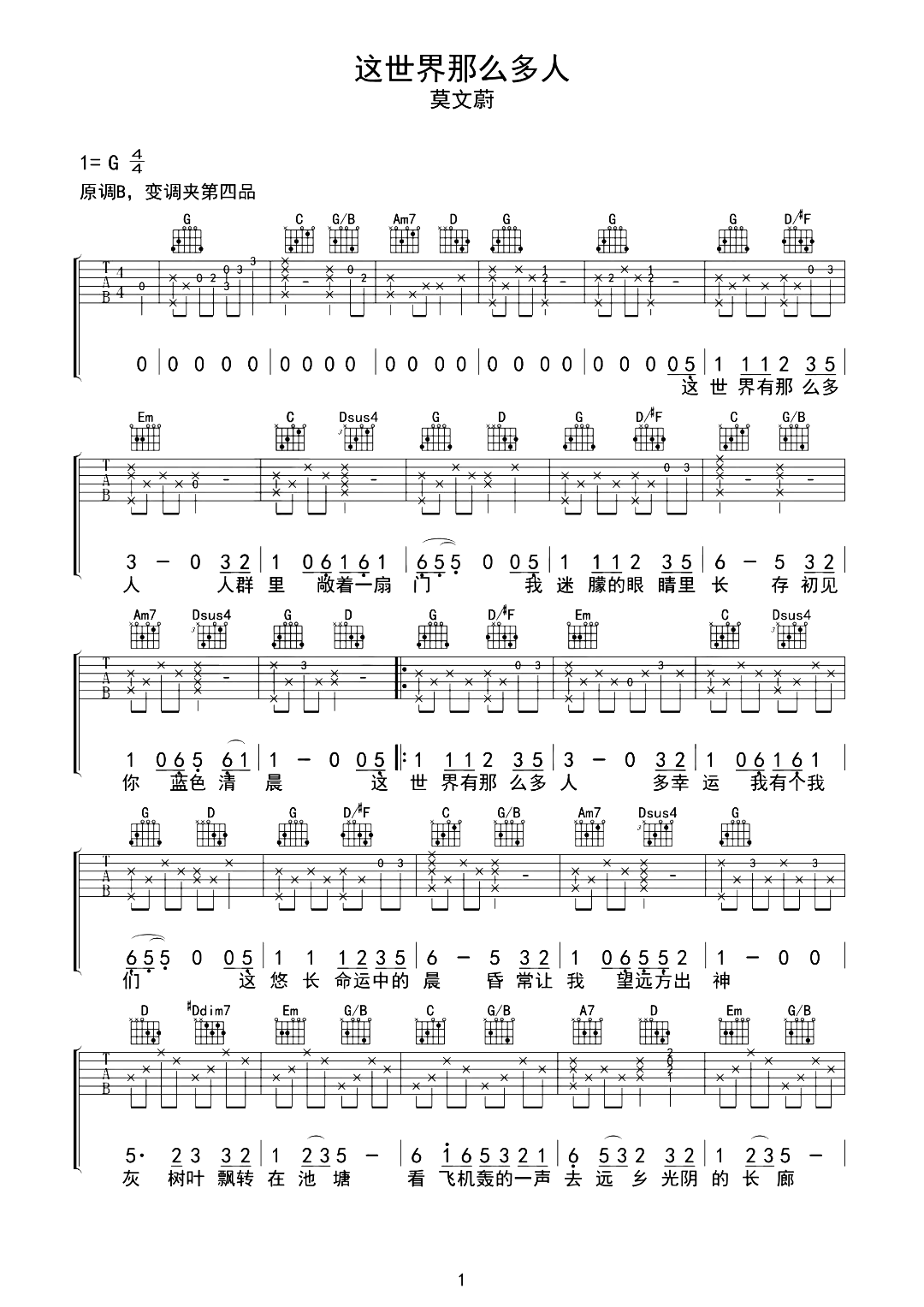 莫文蔚《这世界那么多人》吉他谱,共有2张高清图谱,免翻页排版设计。...