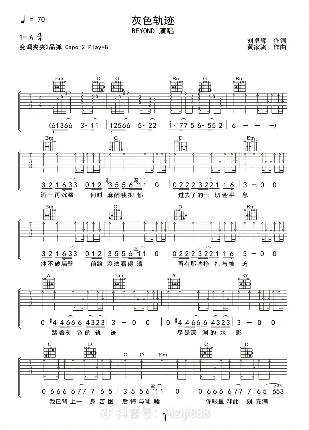 吉他黄家驹《灰色轨迹》吉他谱_吉他弹唱谱
