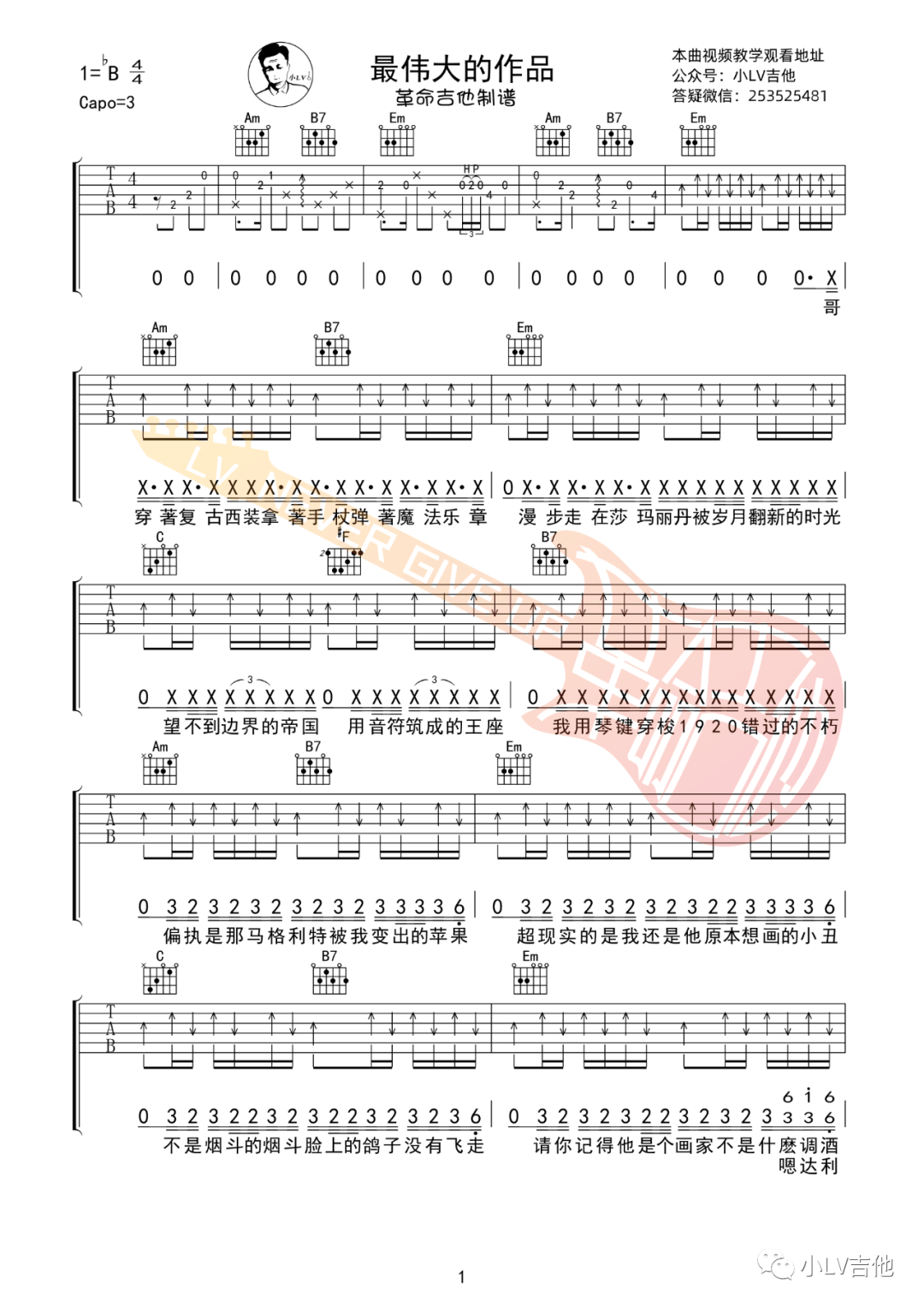 周杰伦《最伟大的作品》吉他谱,革命吉他编配出品,共有5张高清图谱。...