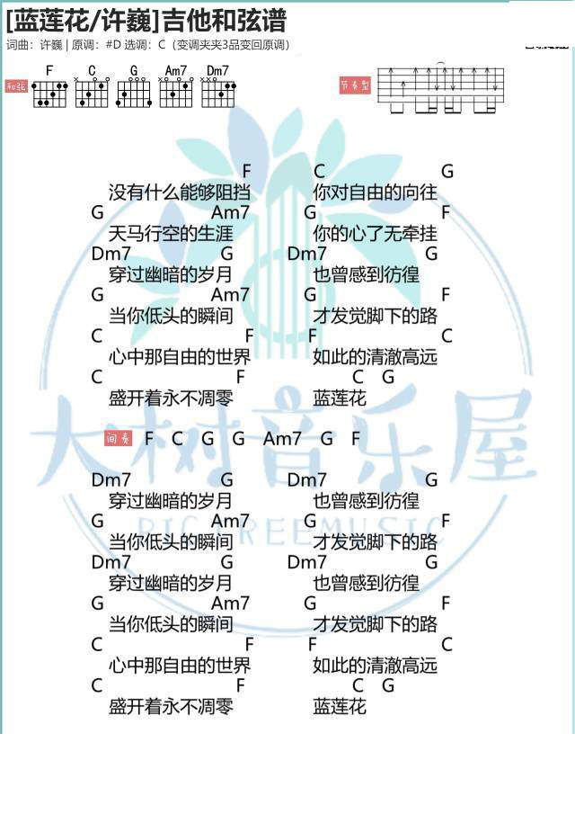 吉他周杰伦《蓝莲花》吉他谱_吉他弹唱谱_大树音乐屋编配