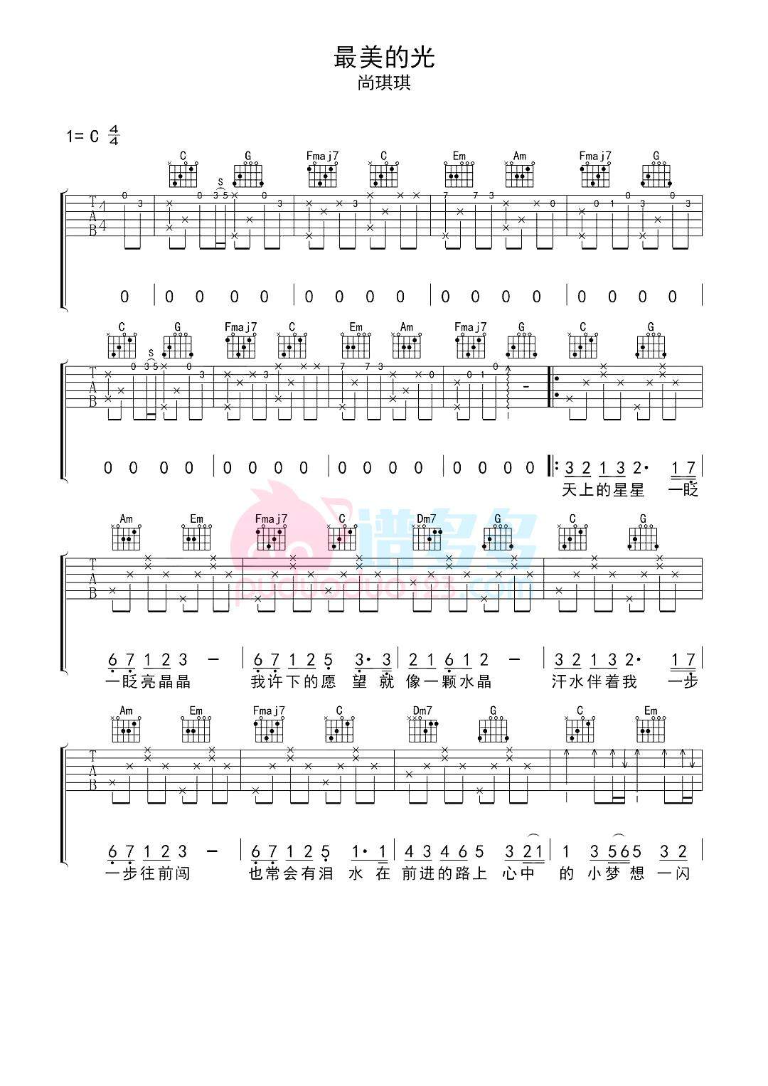 吉他尚琪琪《最美的光》吉他谱_吉他弹唱谱