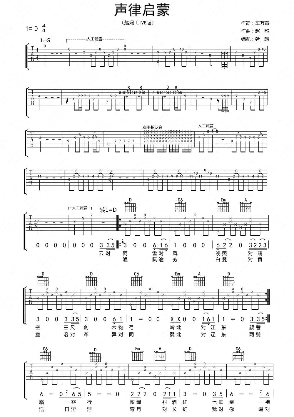 吉他赵照《声律启蒙》吉他谱_吉他弹唱谱