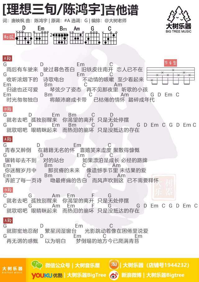 吉他陈《理想三旬》吉他谱_吉他弹唱谱_大树音乐屋编配