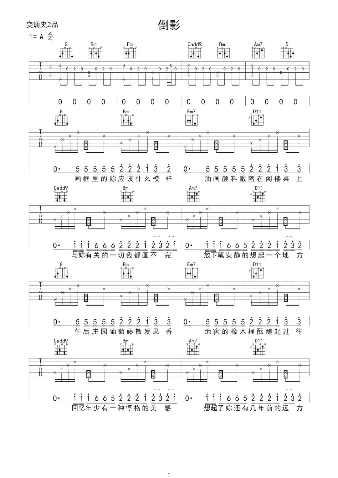 周杰伦《倒影》吉他谱,革命吉他编配出品,共有3张高清图谱。...