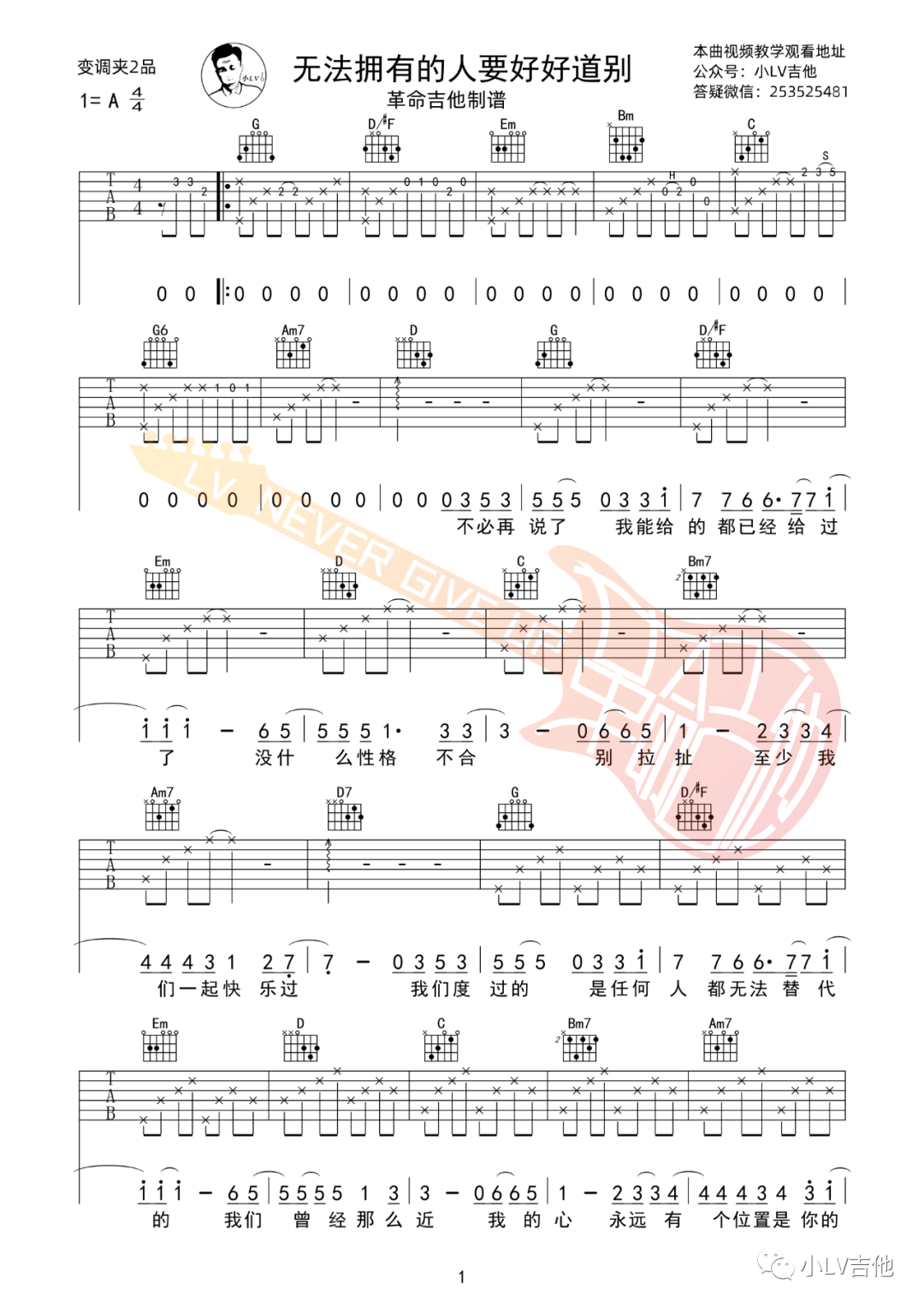 Chengc_澄/Dipsy《无法拥有的人要好好道别》吉他谱,革命吉他编配出品,共有3张高清图谱。...