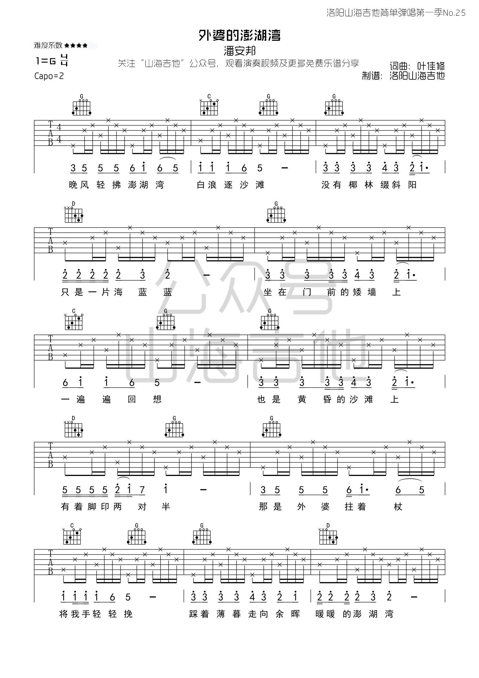 吉他潘安邦《澎湖湾》吉他谱_吉他弹唱谱_何奔洋编配