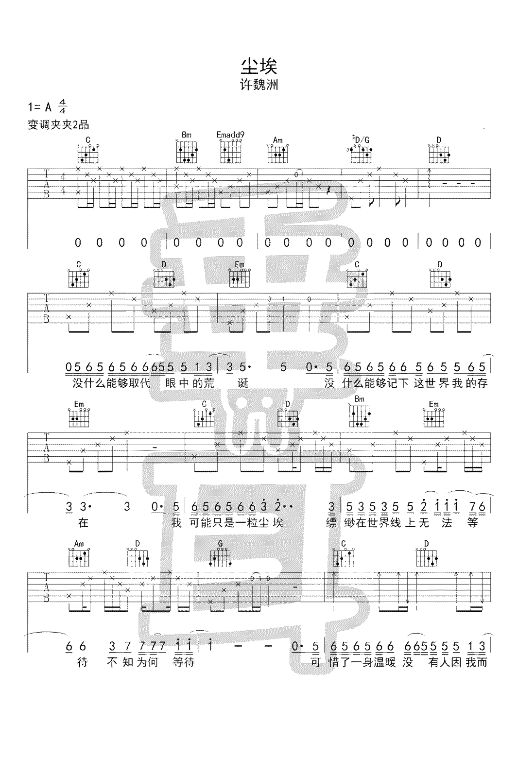 吉他许魏洲《尘埃》吉他谱_吉他弹唱谱_垂耳吉他编配