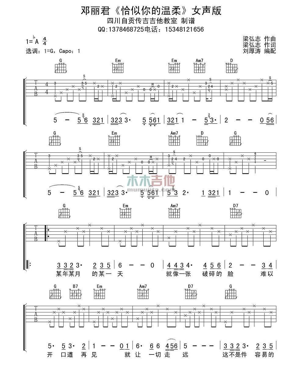 吉他邓丽君《恰似你的温柔》吉他谱_吉他弹唱谱