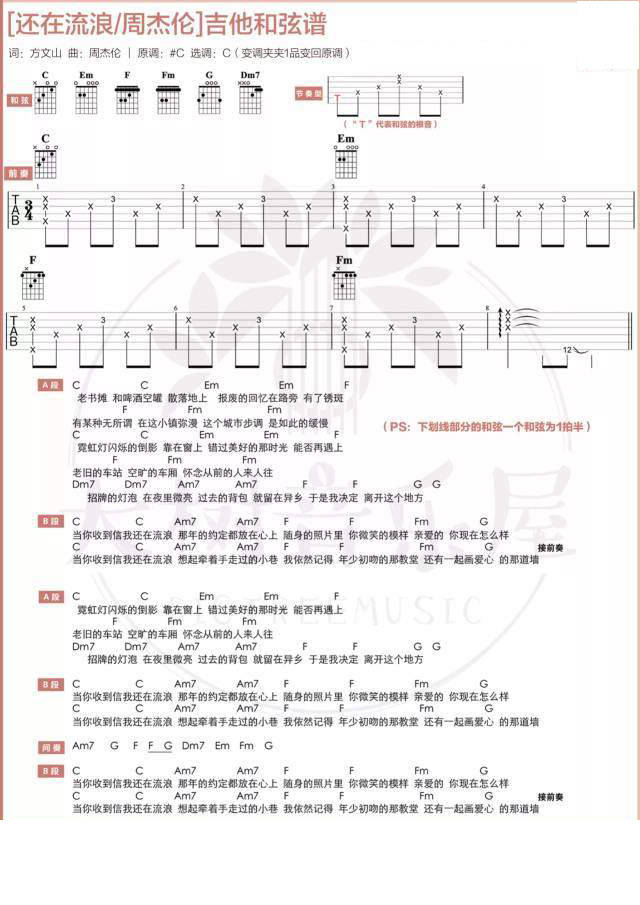 吉他周杰伦《还在流浪》吉他谱_吉他弹唱谱