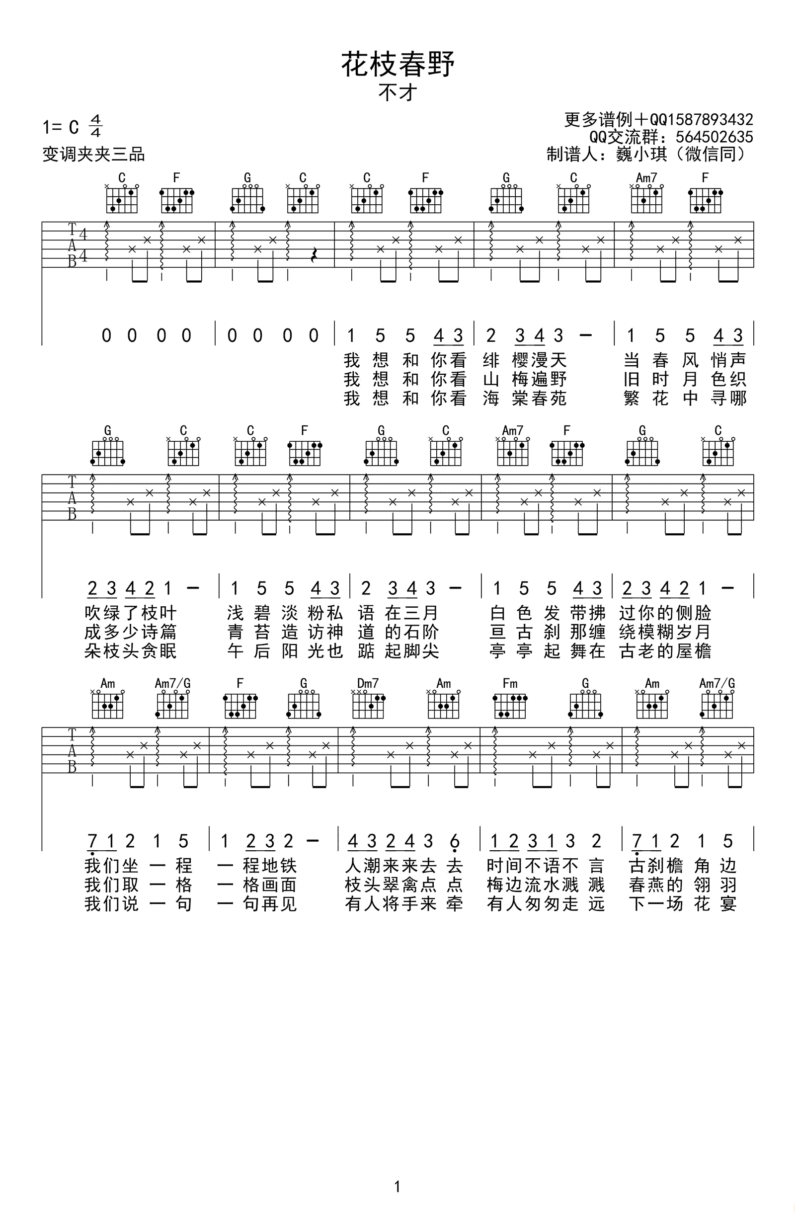 吉他不才《花枝春野》吉他谱_吉他弹唱谱_巍小琪编配
