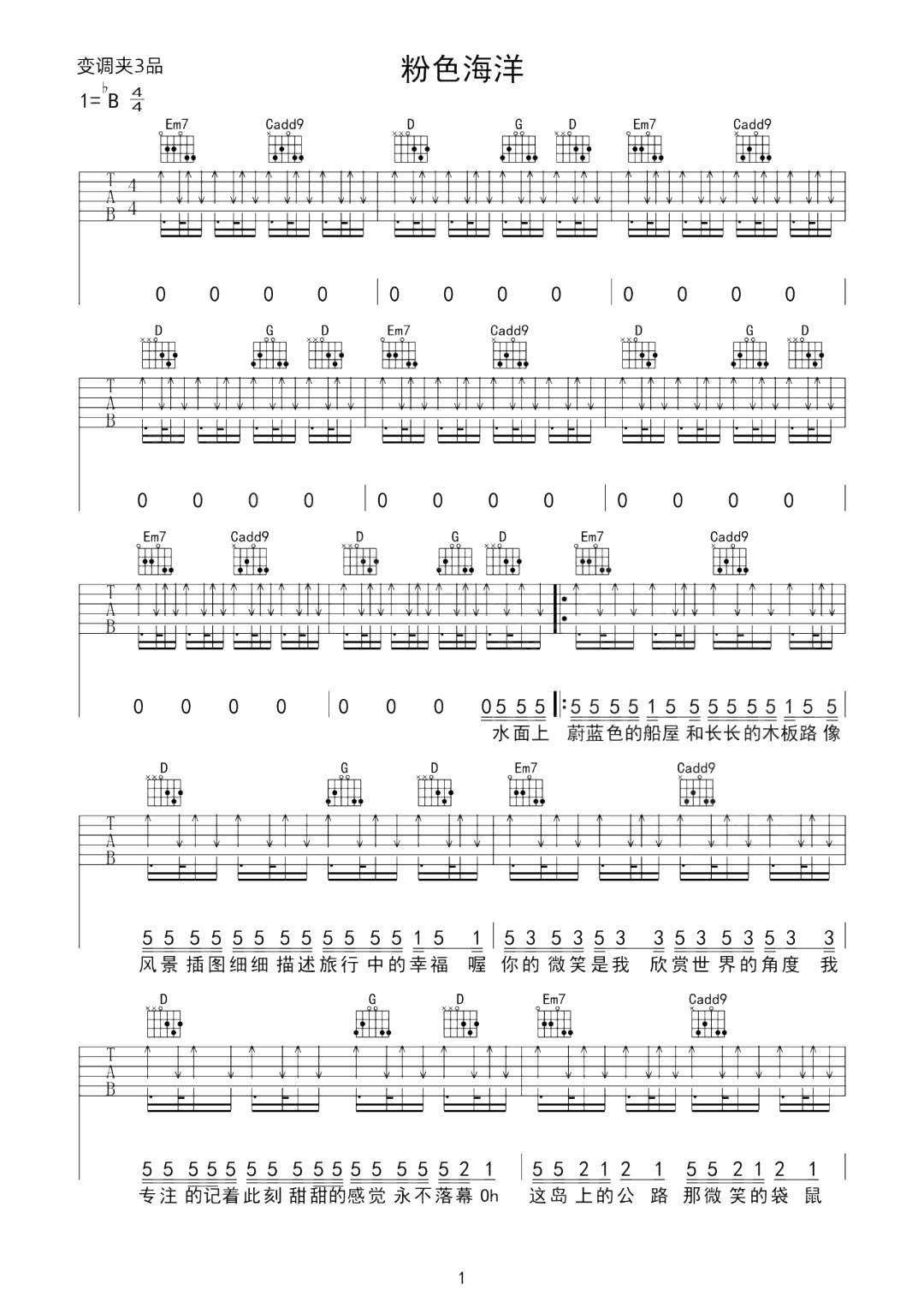 周杰伦《粉色海洋》吉他谱,革命吉他编配出品,共有3张高清图谱。...