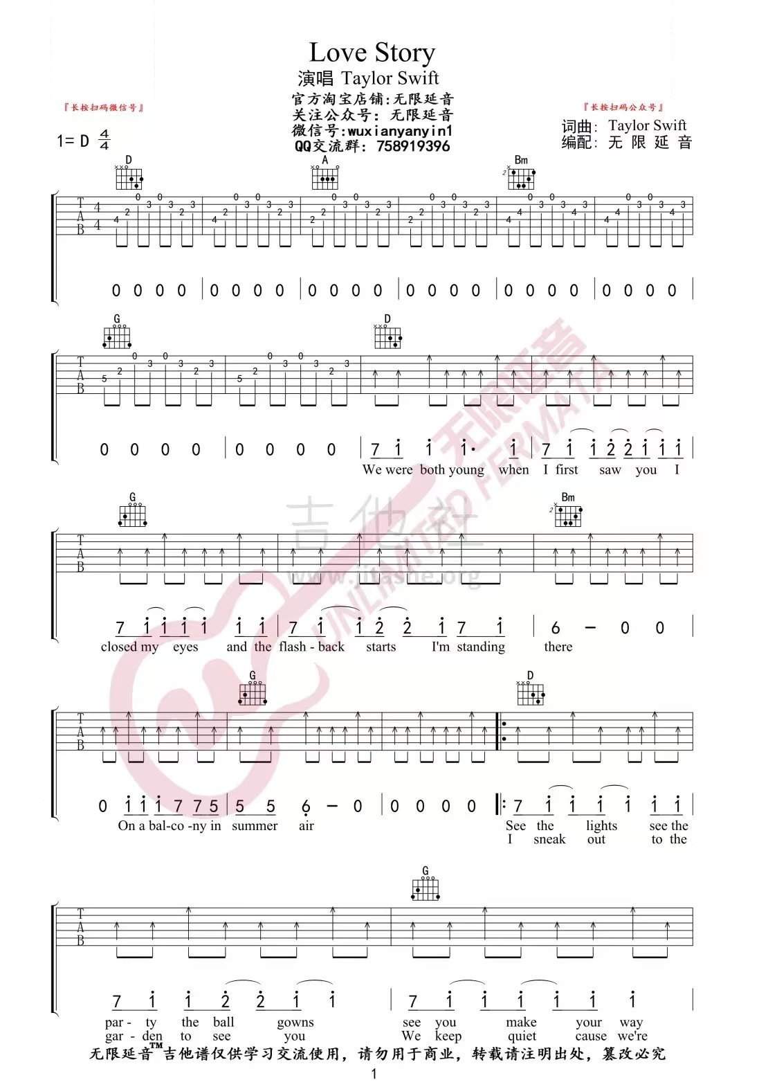 TaylorSwift《LoveStory》吉他谱,无限延音编配出品,共有5张高清图谱。...