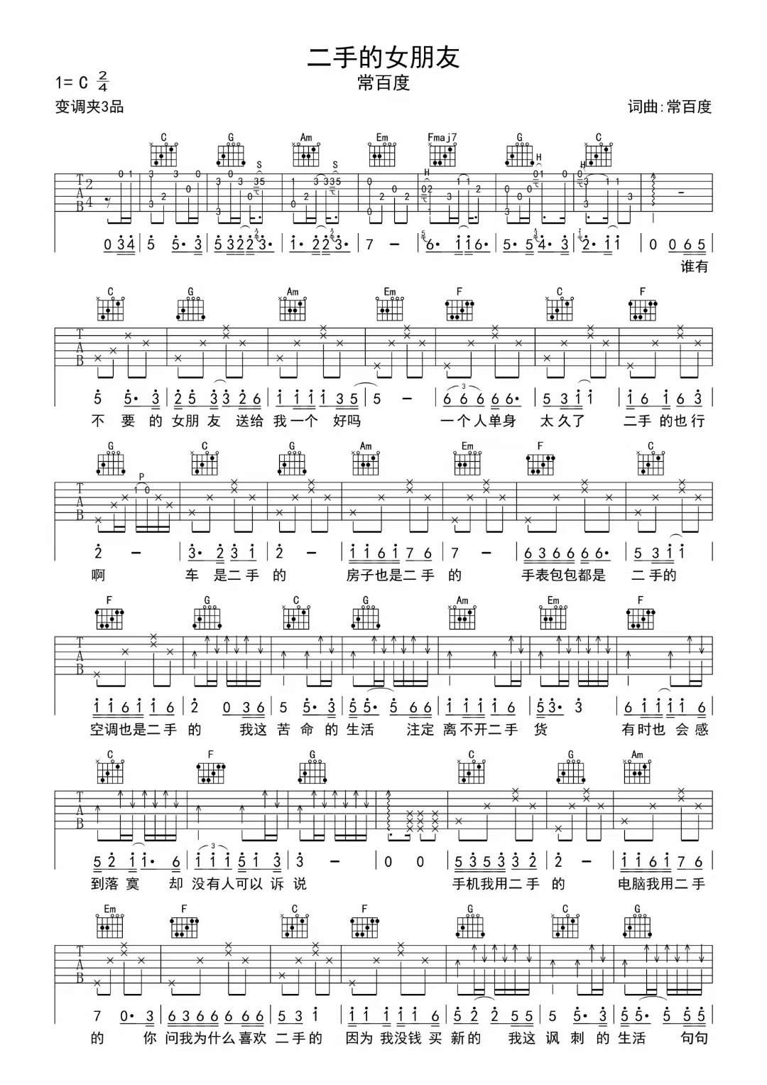 吉他常百度《二手的女朋友》吉他谱_吉他弹唱谱