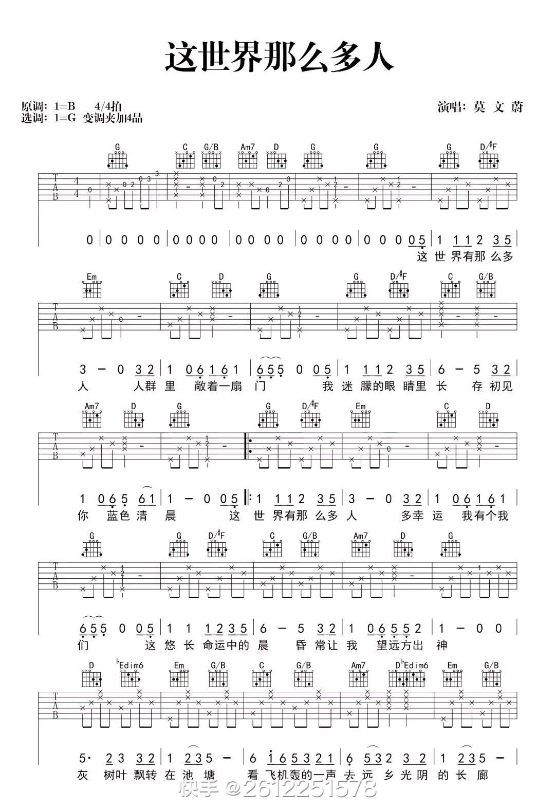 吉他莫文蔚《这世界那么多人》吉他谱_吉他弹唱谱_山山吉他编配