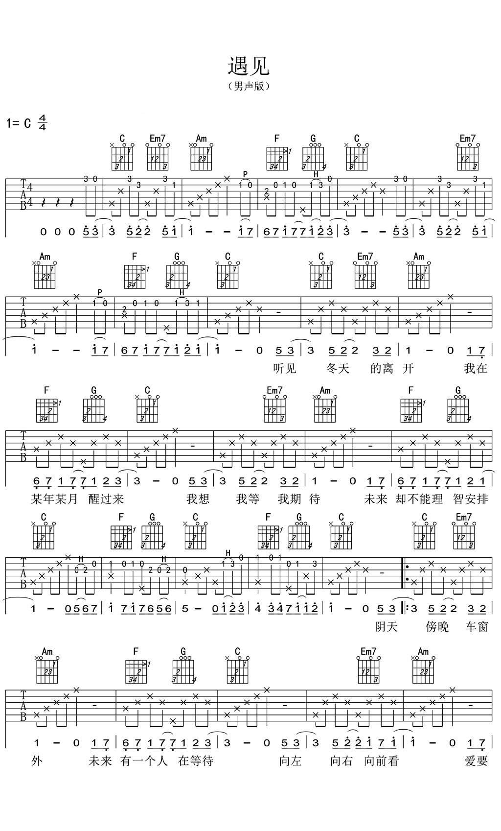 遇见吉他谱C调男生版,孙燕姿演唱的一首最爱情歌。有些感动历久弥新,无可取代,能唱出我们心中对爱情的期待,以及命运的喜悦与无奈。一首被无数歌者传唱的经典,每个翻唱的人都会根据自己的经历,自己对音乐的理解,唱出自己的味道,你的吉他弹唱,会给人怎样的感动?...