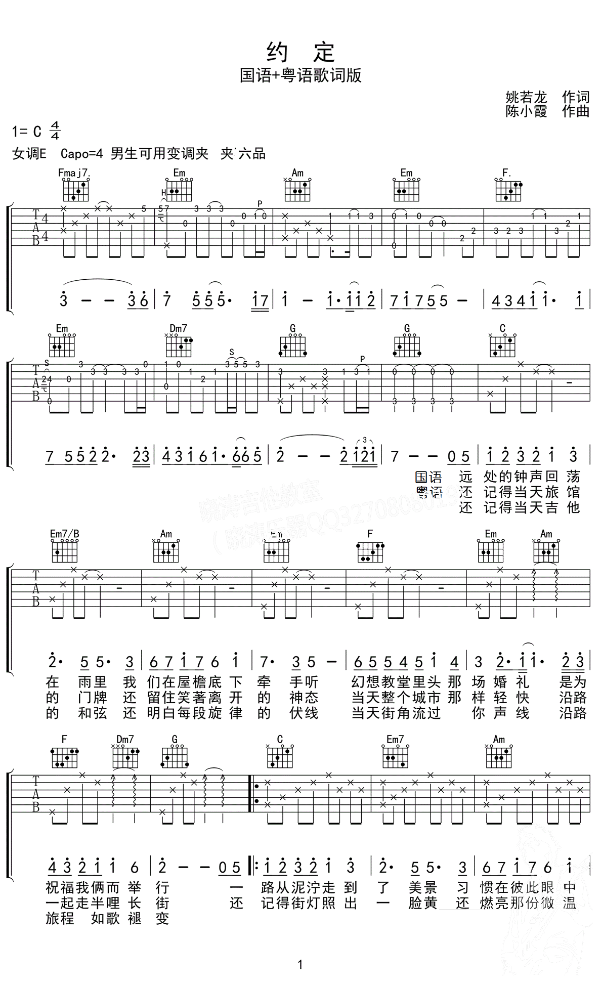 周蕙陈奕迅《约定》吉他谱_C调吉他弹唱谱_国语粤语版...