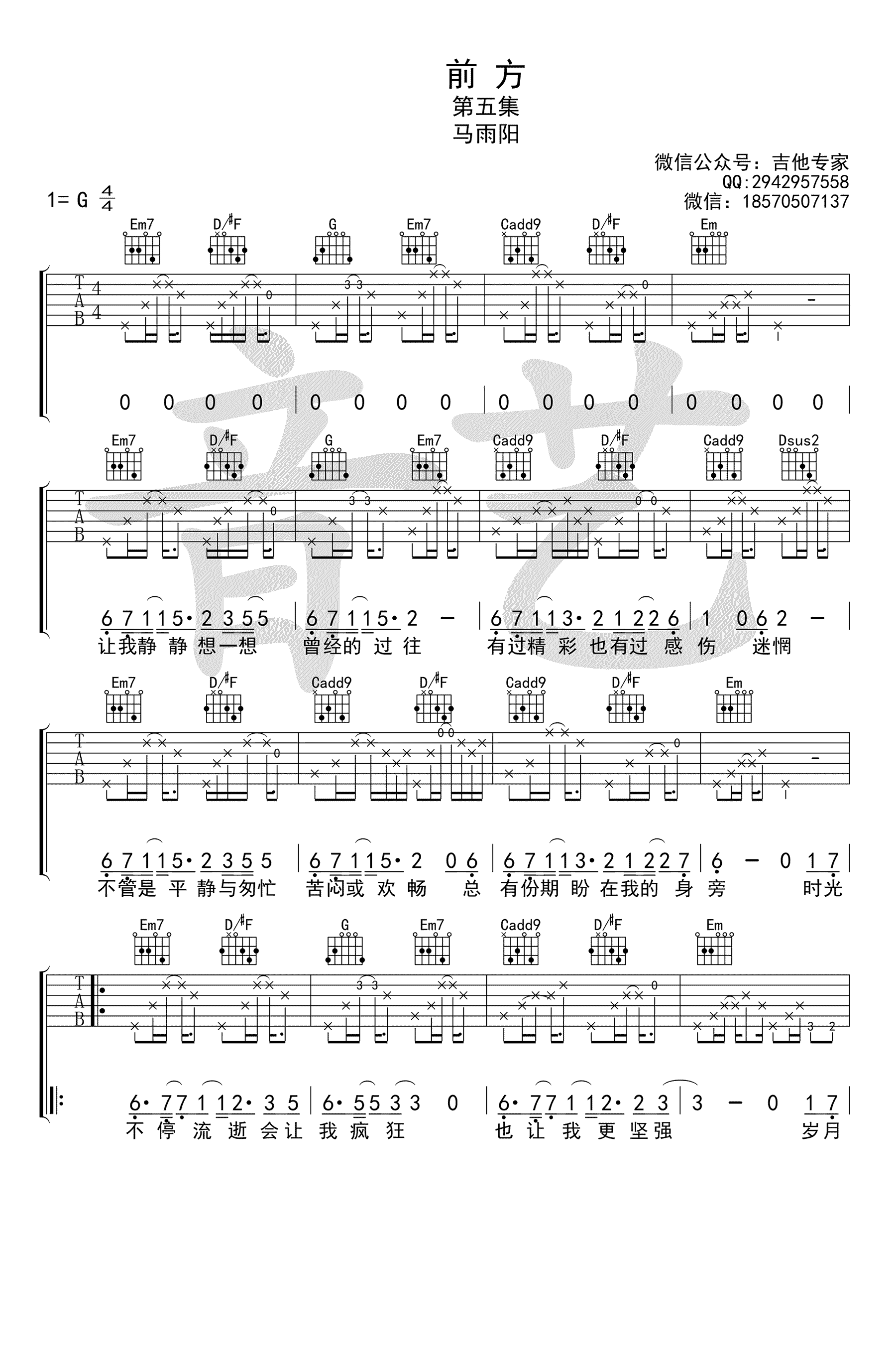 吉他马雨阳《前方》吉他谱_吉他弹唱谱_吉他专家编配